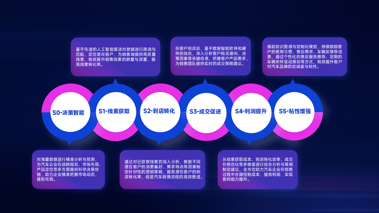 通过拓宽潜在客户来源、、优化线索分配并提高到店转化率,,,以增强销售效率。。。同时,,,,利用线索数据不断优化分析模型,,,有效提升转化率,,,扩大营销影响力。。。
